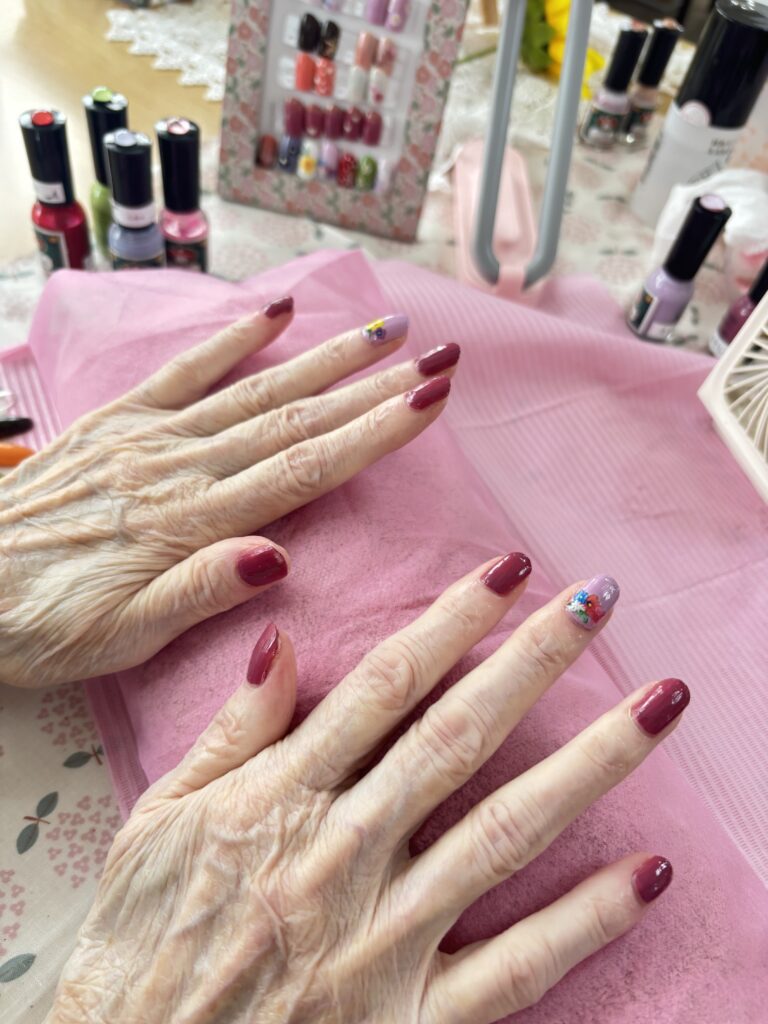 マニキュアをした手を見ることで、気持ちが落ちつく、笑顔になるなど
